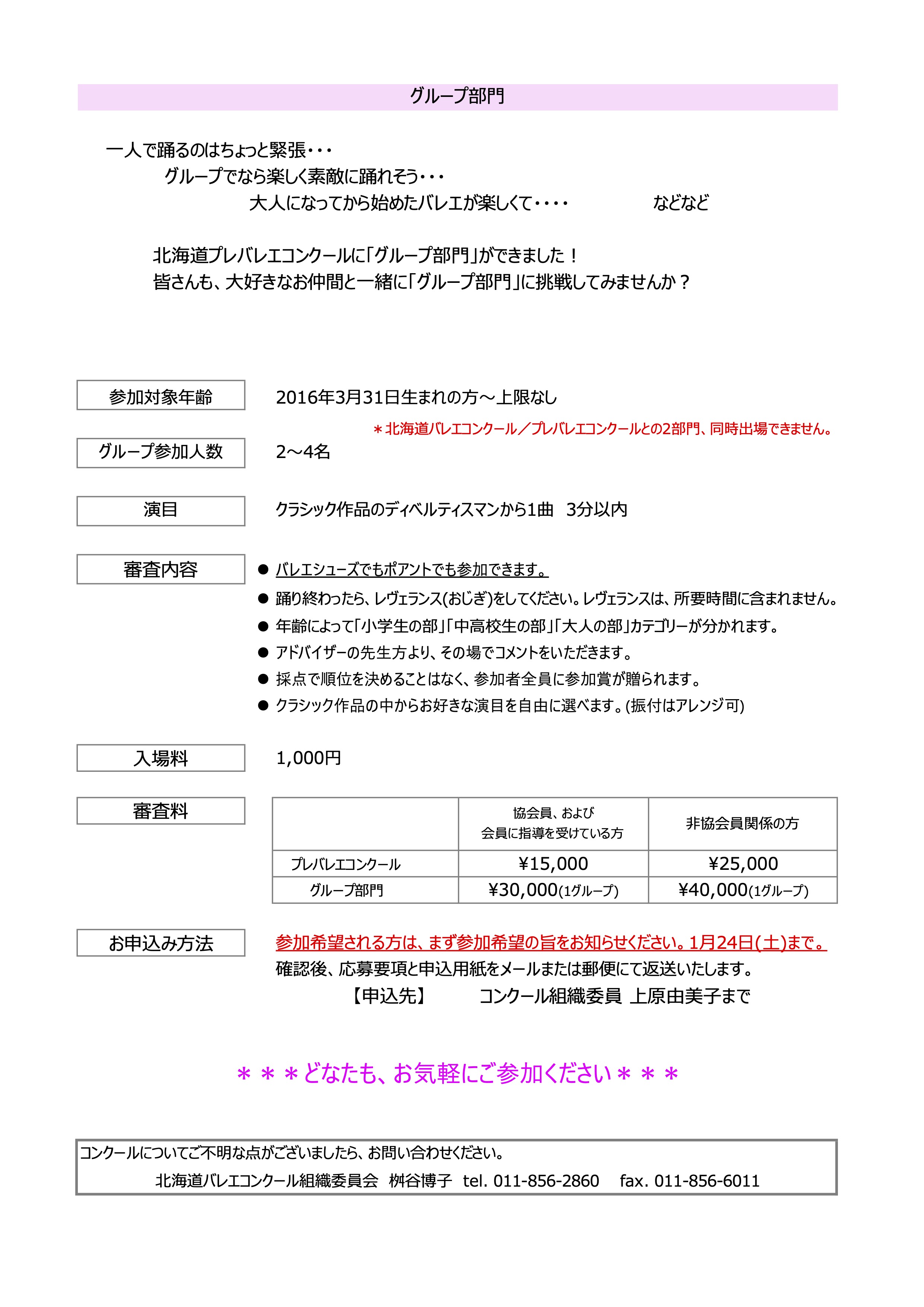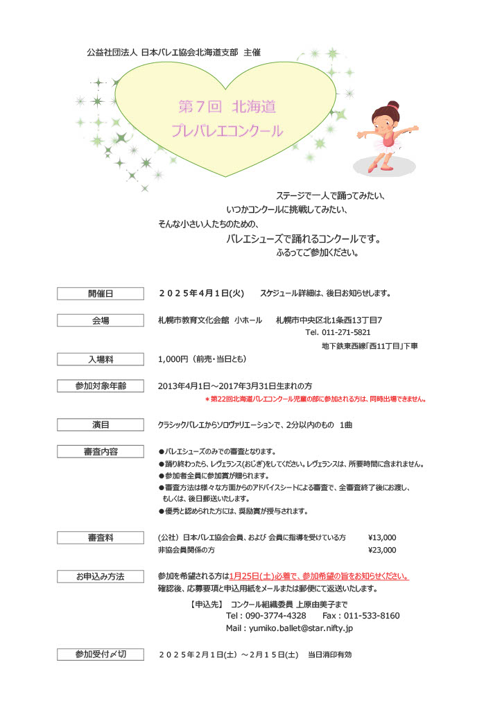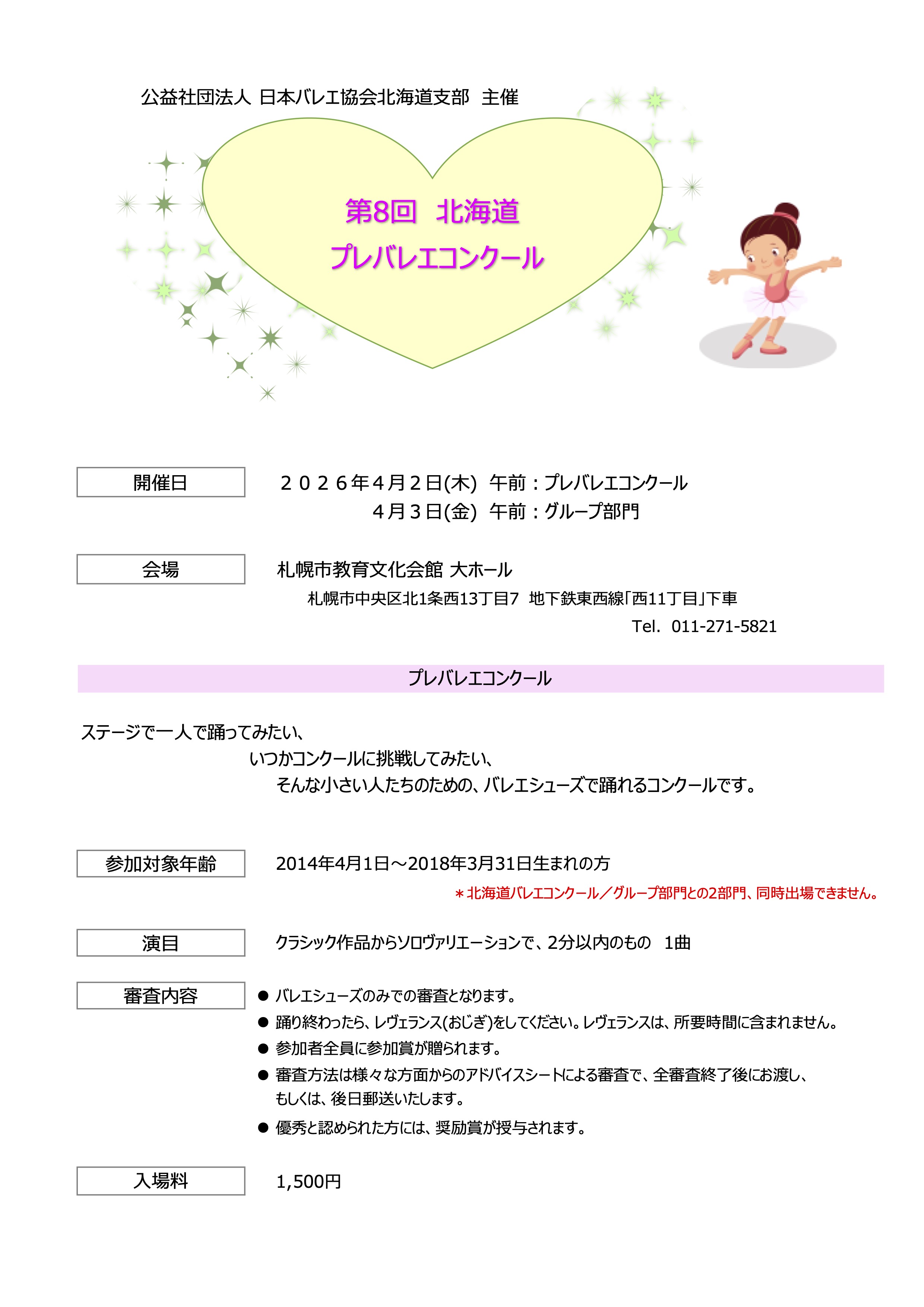 第3回北海道プレバレエコンクール 開催のお知らせ |